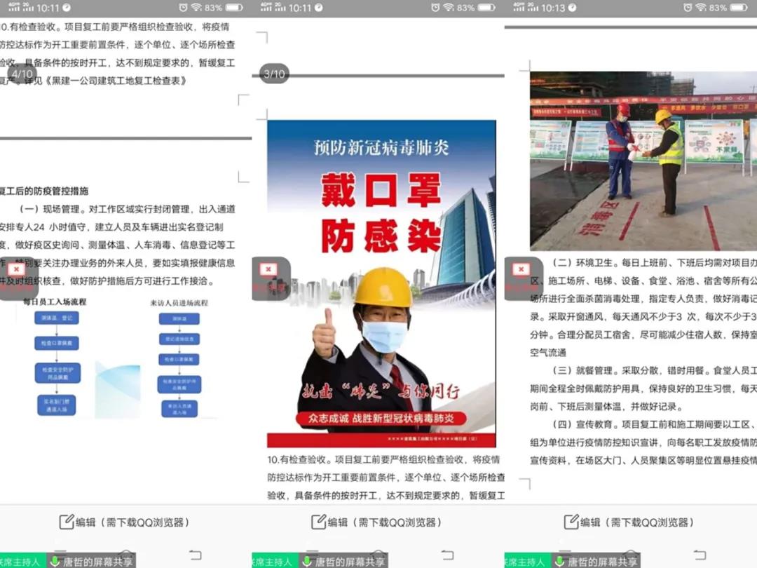 唐哲就疫情防控期間如何做好項(xiàng)目復(fù)工前準(zhǔn)備,復(fù)工后如何確保項(xiàng)目安全制訂了詳細(xì)的方案并為大家進(jìn)行講解。他強(qiáng)調(diào)按照上級(jí)部門的要求各項(xiàng)目在開(kāi)工前要做好充分的準(zhǔn)備,做到“五個(gè)一律”:開(kāi)復(fù)工手續(xù)不完善,一律不得開(kāi)復(fù)工;安全管理不到位,一律不得開(kāi)復(fù)工;防范措施不落實(shí),一律不得開(kāi)復(fù)工;隱患問(wèn)題不清零,一律不得開(kāi)復(fù)工;違規(guī)開(kāi)復(fù)工,一律受到嚴(yán)格處罰并依法追究相關(guān)責(zé)任。復(fù)工要做到“十有”:有組織機(jī)構(gòu)、有工作方案、有防疫物資、有消毒記錄、有排查登記、有安全措施、有封閉管理、有宣傳培訓(xùn)、有隔離場(chǎng)所、有檢查驗(yàn)收。在講到復(fù)工后的防疫管控措施時(shí),他從現(xiàn)場(chǎng)管理、環(huán)境衛(wèi)生、就餐管理、宣傳教育、應(yīng)急處置、生產(chǎn)安全等6個(gè)方面做了詳細(xì)的說(shuō)明。方案周密詳實(shí)、責(zé)任權(quán)明晰,管控到位。